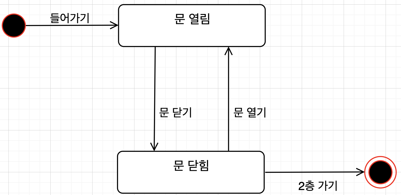 이때 문은 열고 닫힐 수 있으며, 이는 상태로 나타냅니다. 즉 문 열림, 문 닫힘과 같이 말입니다.