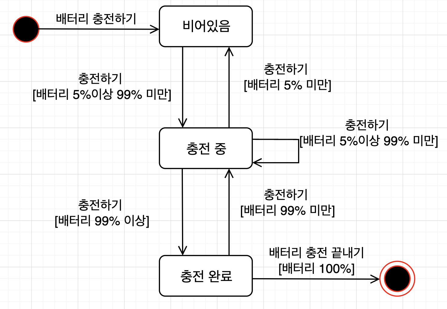 이 정도의 요소들만 알아도 문제없이 멋진 상태 다이어그램을 만드실 수 있습니다.